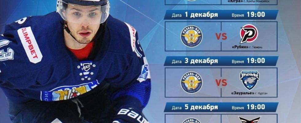 В честь праздника для зрителей будут разыграны подарки. Начало в 19 часов. В среду, 3 декабря, рязанцы сыграют против команды «Зауралье» из Кургана.В пятницу, 5 декабря, состоится матч «Рязань-ВДВ» — «Омские крылья». Начало обеих игр также в 19:00.