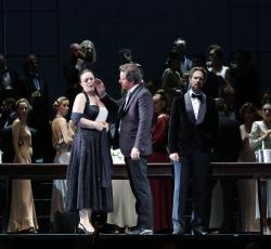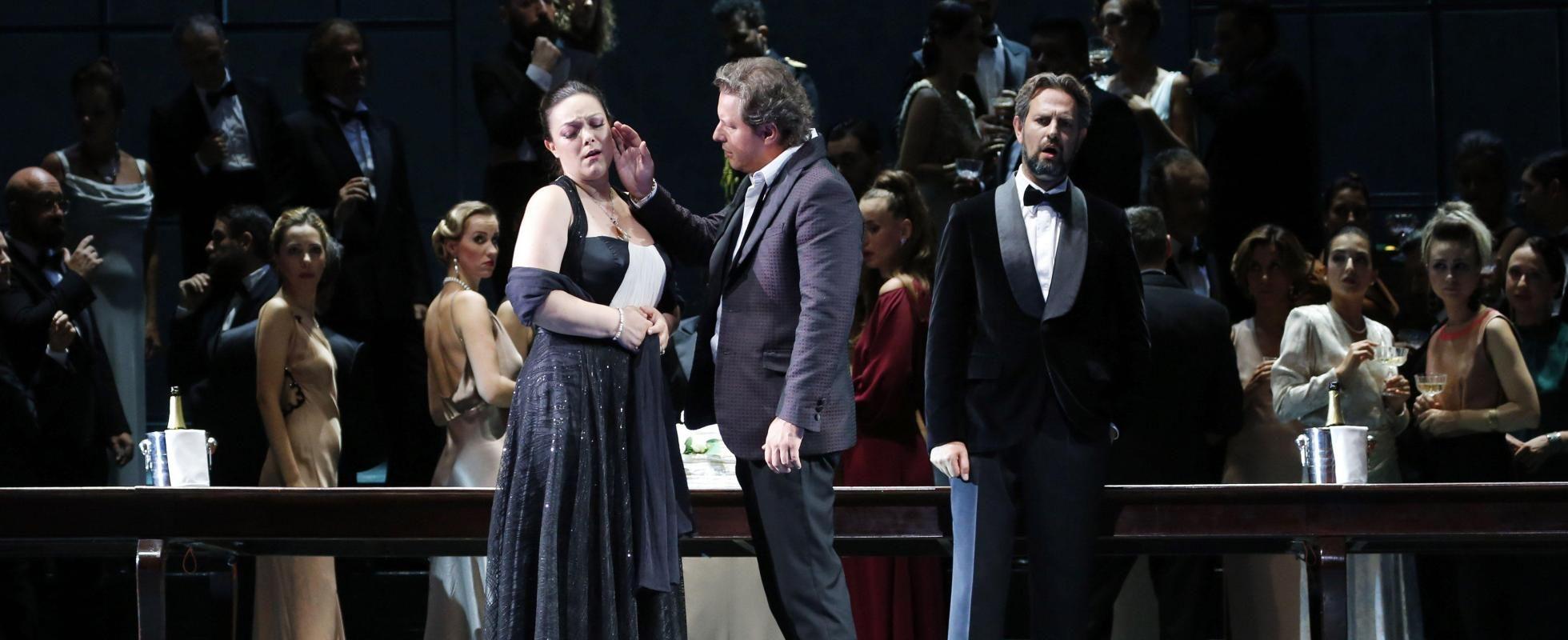 Оригинальный женский взгляд на вечную трагедию — самая изысканная из постановок россиниевского фестиваля-2022. Шекспир не был основным источником либреттиста Франческо Марии Берио, и в первых двух актах мало что указывает на что-то, выходящее за рамки обычных тропов оперы seria: тайный брак, суровый отец, коварные соперники. Даже ключевой шекспировский платок заменен любовным письмом. Только в третьем акте, с ивовой песней Дездемоны, наконец узнаешь Барда. Декорации Тициано Санти и костюмы Урсулы Патцак предлагают условно современную обстановку для вечной трагедии, а пара видеопанелей изображает сокровенные мысли персонажей. Мужское насилие над женщинами — центральное послание режиссера Розетты Кукки: мы становимся свидетелями физического нападения Яго на Эмилию, пощечины Эльмиро, когда его дочь Дездемона отказывается выходить замуж за Родриго, вспышки гнева Отелло, когда тот узнает о мнимой неверности жены. Состав исполнителей исключительно силен, особенно вокальная «пиротехника» трех главных теноров. Энеа Скала в потрясающей форме, его бронзовый, крепкий тенор — самый темный из трех, но с захватывающим squillo для трубоподобных всплесков ярости Отелло. Дмитрий Корчак (Родриго) — самый лиричный из этой троицы. Голос Антонино Сирагуза, ветерана Россини, — более тонкий инструмент, но он привнес резкую ноту в махинации Яго. Элеонора Буратто, в полном согласии с режиссерской концепцией, спела благородную Дездемону, которую, словно куклу, перекидывают друг другу соперничающие мужчины. Трагедия Уильяма Шекспира «Отелло» о полководце-мавре, его коварном лейтенанте Яго и несчастной Дездемоне послужила основой не только для знаменитой оперы Верди. Король бельканто Джоаккино Россини в 1816 году также написал одноименную оперу, правда, сюжет ее отличается от шекспировского оригинала (и оперы Верди) весьма значительно. Действие происходит не в Венеции, а на Кипре, а роль Родриго сильно расширена — он так же важен для сюжета, как Отелло и Яго, из-за чего «Отелло» Россини иногда называют «оперой трех теноров».