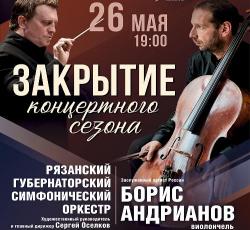 26 мая в Рязанской филармонии состоится закрытие 82-го концертного сезона. В этот вечер выступит заслуженный артист России Борис Андрианов (виолончель) и Рязанский губернаторский симфонический оркестр под управлением Сергея Оселкова. В программе прозвучат фантазия для виолончели и оркестра М. Вайнберга, концерт №1 для виолончели с оркестром ля минор К. Сен-Санса и симфония №8 доминор Д. Шостаковича.
