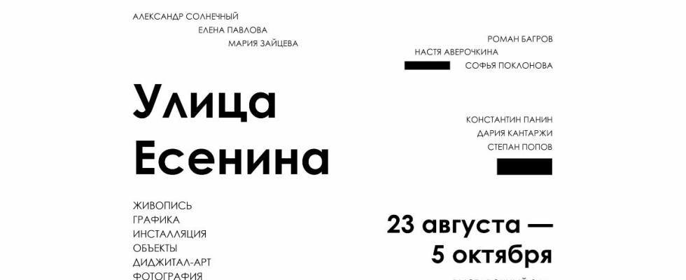 Работы 34 современных рязанских художников, созданные специально для этой выставки, несмотря на наличие расширенных экспликаций с авторскими концепциями в экспозиции, открыты для диалога со зрителем и интерпретаций. Это 34 взгляда на жизнь и творчество, 34 художественные системы с характерными стилем и методами. Поэтому «Улица Есенина», во многом, не про улицу и не про Есенина, а про самих художников. Среди них те, кто принадлежит к официальному срезу рязанской культуры — состоят в Союзе художников, преподают в учебных заведениях — и те, кто работает в андеграундной среде и занимаются офлайн- и онлайн-искусством: лэнд-артом, диджитал-артом, стрит-артом. Многие из них известны далеко за пределами Рязани, их работы были представлены в разных музеях и на альтернативных площадках города, но впервые в таком количестве и составе художники участвуют в одном выставочном проекте.