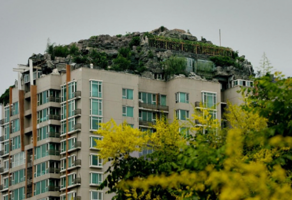 1. Самый творческий ремонт в мире создал эксцентричный профессор Чжан Лин из Пекина. Он потратил шесть лет на возведение каменной виллы прямо на вершине жилой многоэтажки площадью 800 кв.м., организовав там удивительный уголок природы.