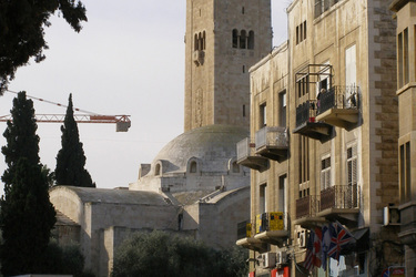 Деловой центр города появился в те времена, когда Иерусалим находился под управлением Британии (1918-1947), поэтому если бы не пальмы, можно было бы вообразить себя в Лондоне. С тех же пор над другими зданиями возвышается высокая башня Ассоциации христианской молодежи (YMCA), которую видно отовсюду и которая вместе с гостиницей «Царь Давид» отмечает один из выходов к Яффским ворота Старого города.