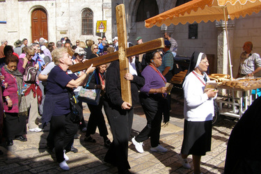 Сегодня практически вдоль всего Скорбного пути шумит восточный базар — это территория мусульманского квартала. Иногда видно, как кто-то из христиан несет по улице деревянный крест, подражая Иисусу Христу.