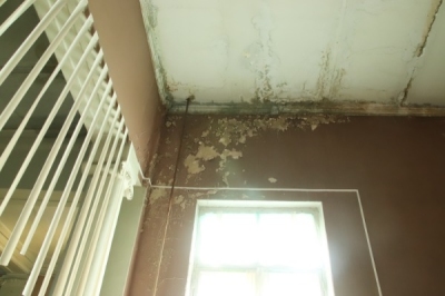 Больше всего от протечек пострадали актовый и малый залы, также «досталось» и аудиториям. Как видно на фотографиях, из-за стекающей с крыши воды облупились штукатурка и краска на стенах, балки прогнили.