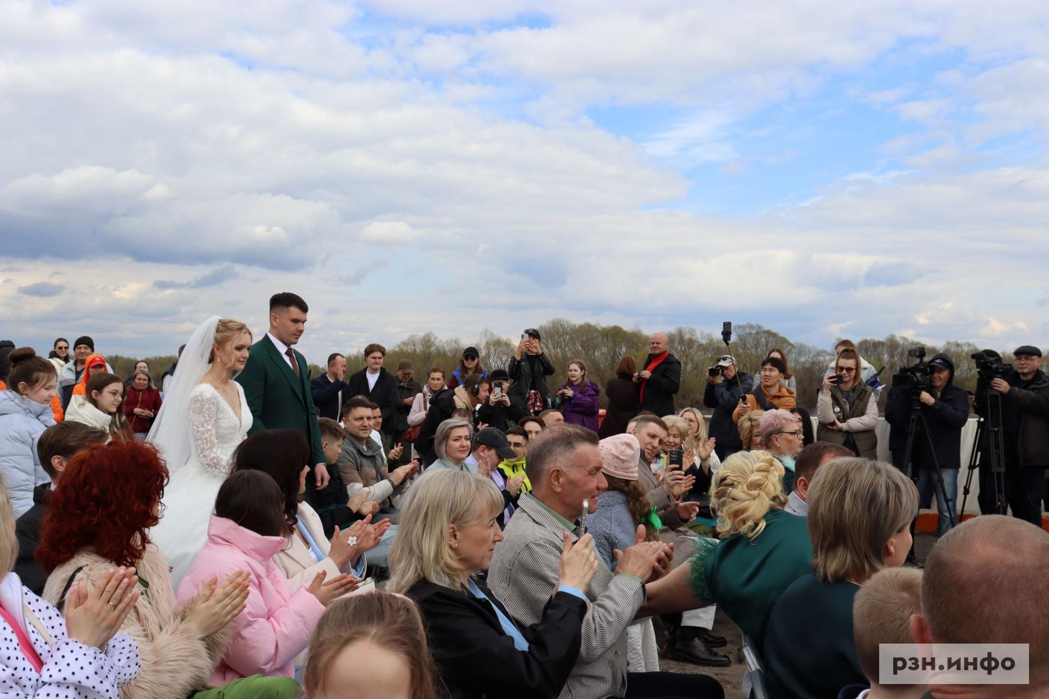 Новоиспеченные супруги Андрей и Мария рассказали, что выбрали эту локацию из-за красоты весенней природы и мечты о свадьбе на свежем воздухе. В качестве подарка от партнеров они получили сертификаты, а в свадебное путешествие планируют отправиться по горам России.