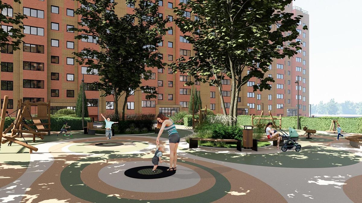 Представьте летний вечер, вы забрали ребенка из садика и вместе неспешно идёте домой по зелёному бульвару, где пахнет свежескошенной травой и цветами. По пути можно заглянуть на детскую площадку, покачаться на качелях или сыграть в пинг-понг. Всё это — не мечты и не кадры из фильма. Совсем скоро именно так будет выглядеть пространство рядом с жилым кварталом «Огни» на улице Большой.