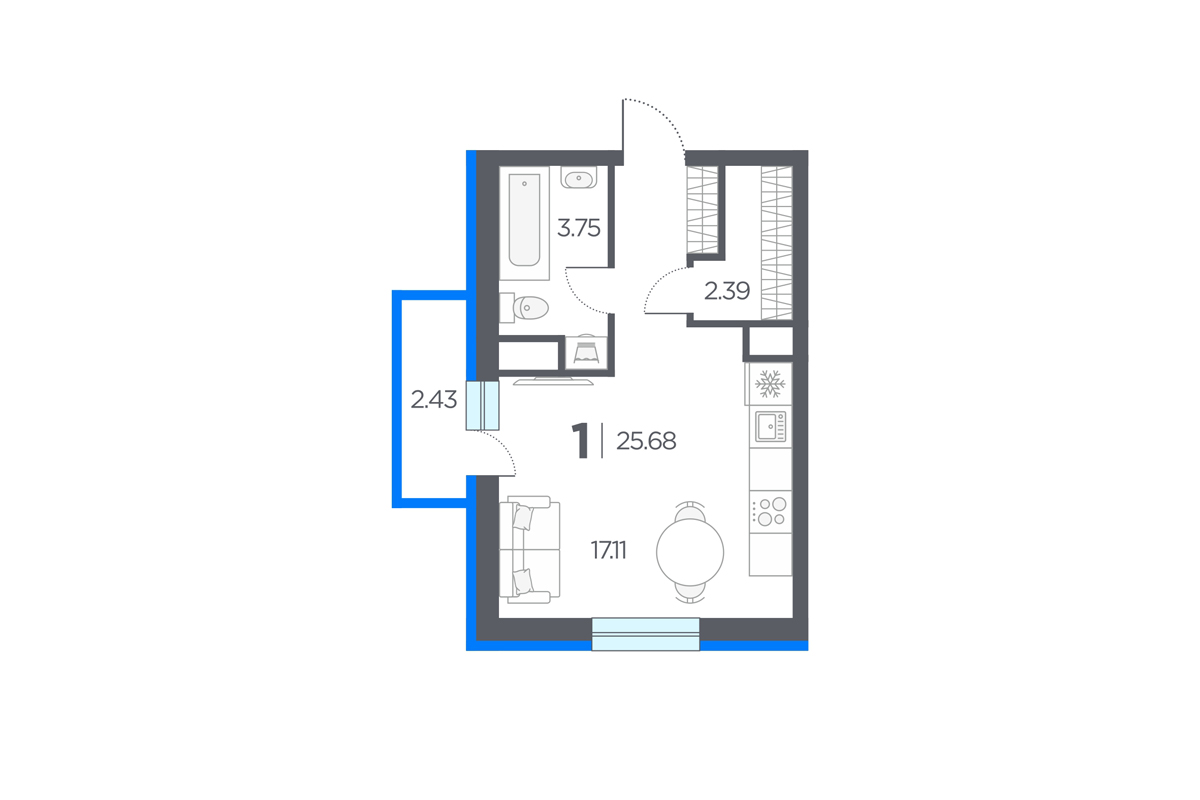 Так, ее можно оформить на 1-комнатную квартиру 36,98 м² с раздельным санузлом в ЖК Новые горизонты.
