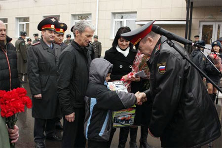 На церемонии открытия присутствовали руководство УВД по Рязанской области во главе с начальником генерал-майорам милиции Иваном Перовым, сослуживцы и родственники погибших милиционеров. В своем выступлении перед собравшимися начальник УВД отметил, что чтить память погибших товарищей – это наш святой долг. «Мы делаем и будем делать все, чтобы их родственники и дети чувствовали заботу и знали, что они никогда не останутся одни со своими проблемами», - отметил Перов. После этого он вручил вдове и сыну Дениса Карцева ключи от новой квартиры и подарочный сертификат на мебель.