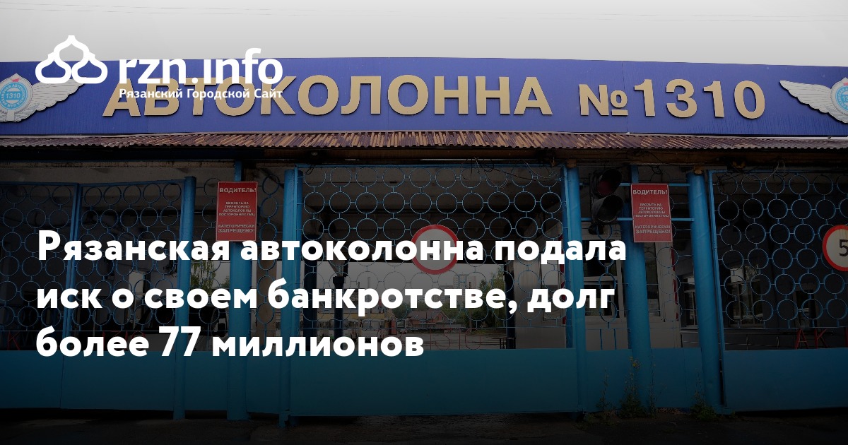 Рязанская «Автоколонна № 1310» подала иск о своем банкротстве. Об этом говорится на сайте Арбитражного суда.