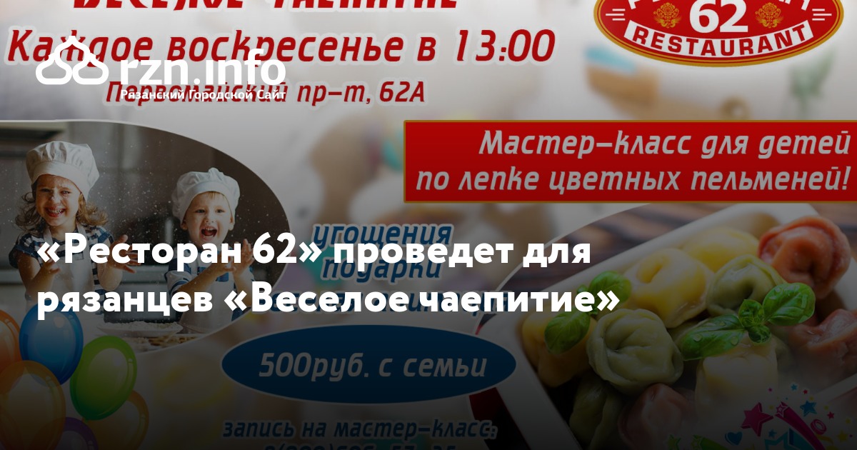 «Ресторан 62» пригласил рязанцев с детьми на «Веселое чаепитие», которое состоится 4 ноября. На нем для гостей организуют мастер-класс по лепке цветных пельменей.