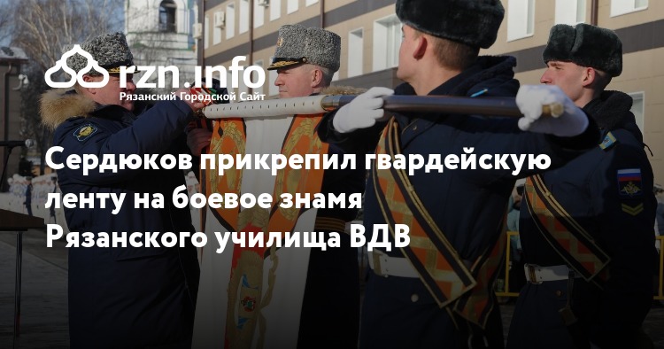 Сердюков прикрепил гвардейскую ленту на боевое знамя Рязанского училища ВДВ