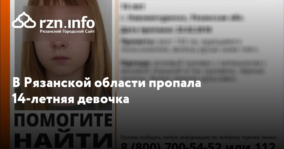 В Рязанской области пропала 14-летняя девочка. Об этом сообщили в группе поисково-спасательного отряда «» «Вконтакте».