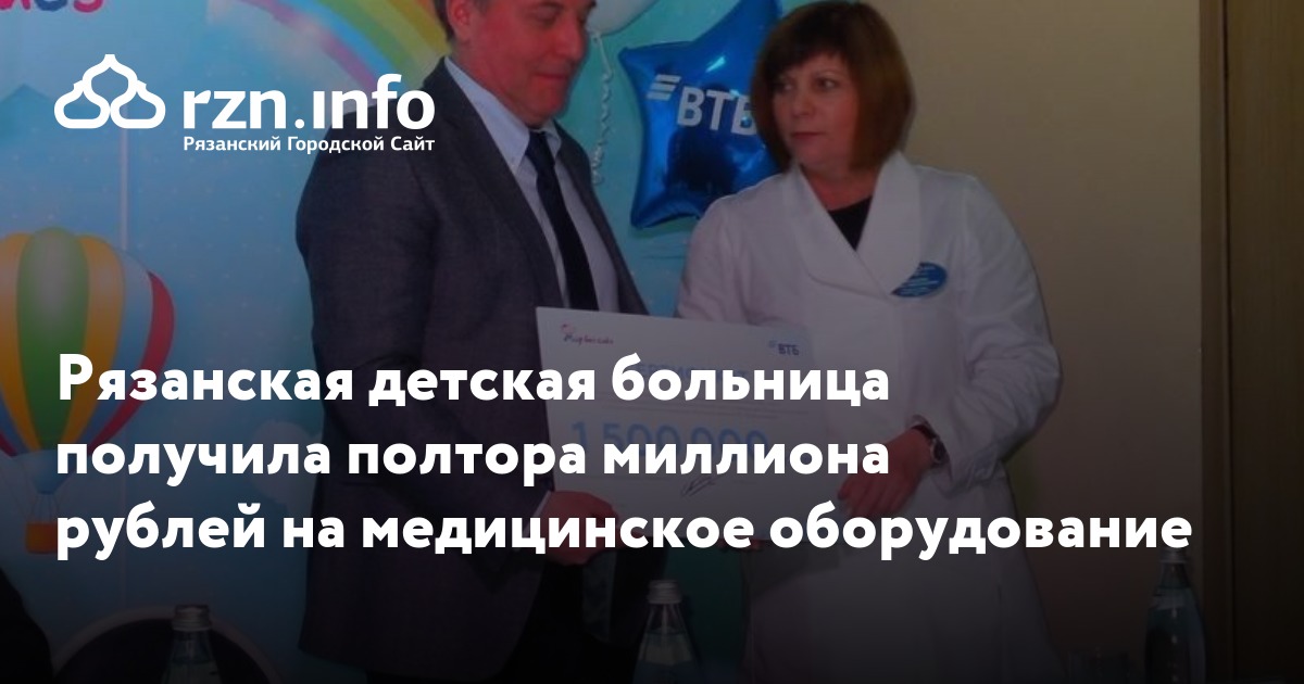 Рязанская областная детская больница получила полтора миллиона рублей на медицинское оборудование. Об этом пишет издательство «».