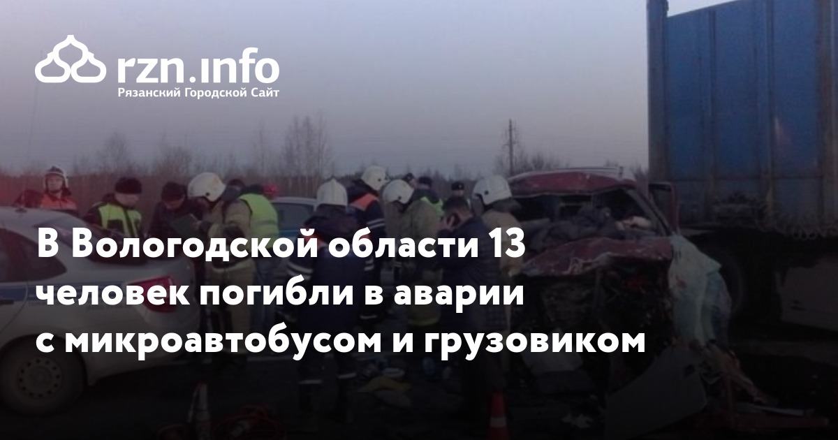 В Вологодской области 13 человек погибли в аварии с микроавтобусом и грузовиком. ДТП произошло в пятницу, 13 апреля, передает «».