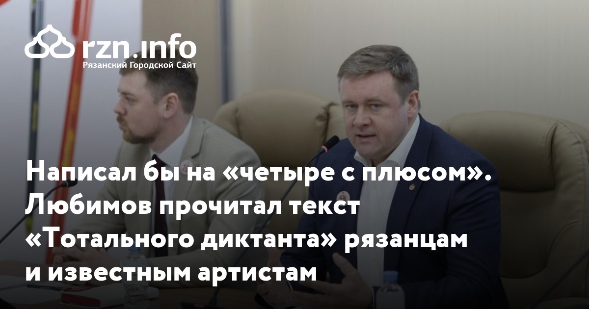 В субботу, 14 апреля, Николай Любимов прочитал текст «Тотального диктанта» рязанцам и известным артистам. Акцию провели на площадке «Рельеф-Центра» в Рыбном, сообщил сайт регионального правительства.