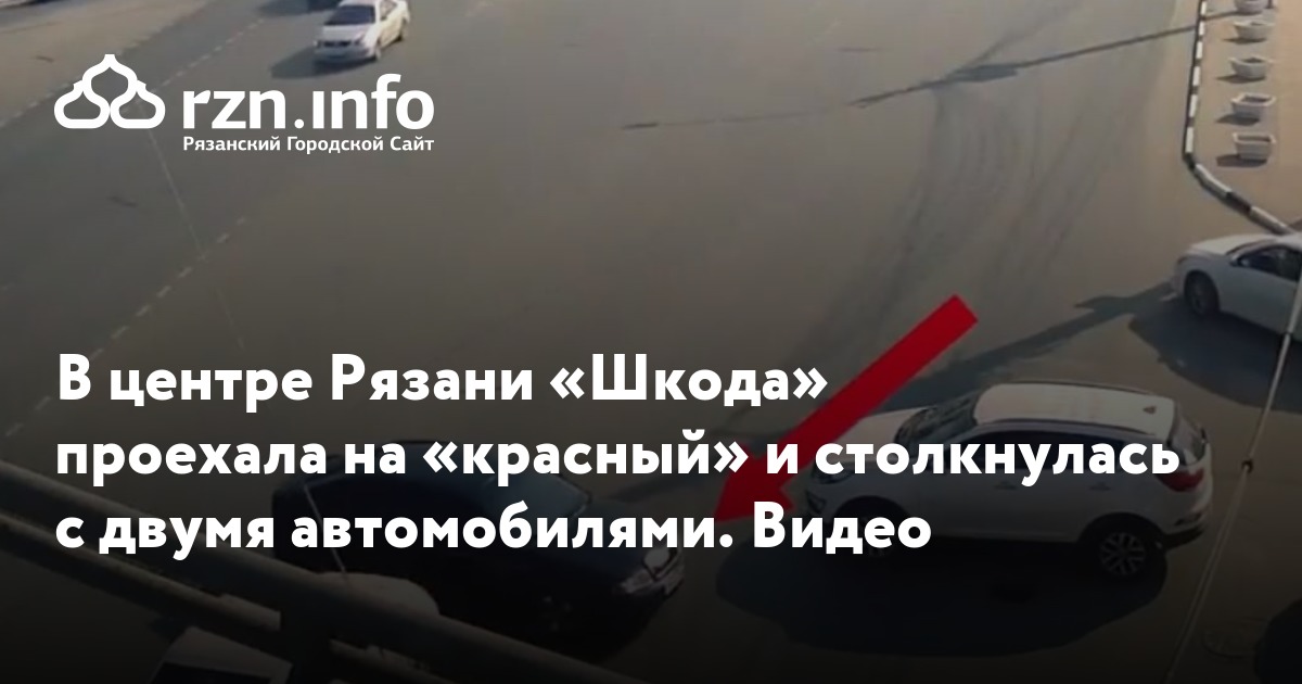В центре Рязани «Шкода» проехала на «красный» и столкнулась с двумя автомобилями. Видео