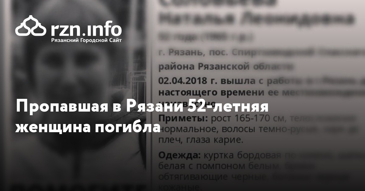 Пропавшая в Рязани 52-летняя женщина погибла