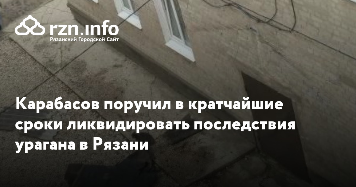 Карабасов поручил в кратчайшие сроки ликвидировать последствия урагана в Рязани. Об этом сообщил горадминистрации.