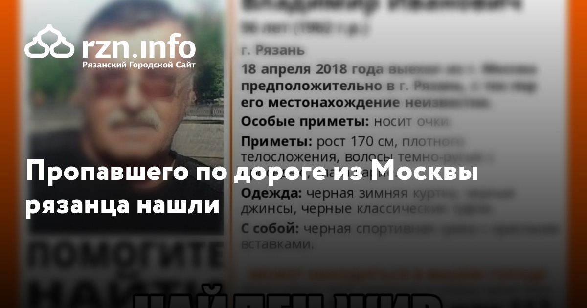 Пропавшего по дороге из Москвы рязанца нашли