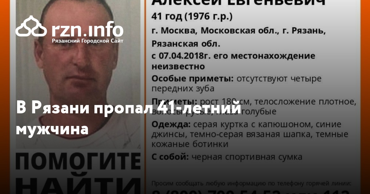 В Рязани пропал 41-летний мужчина. Об этом сообщила группа посиково-спасательного отряда «».