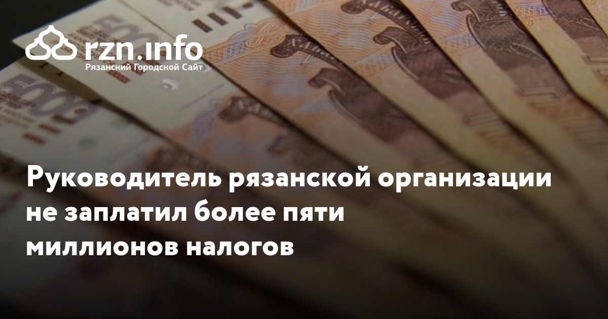 Руководитель рязанской организации не заплатил более пяти миллионов налогов. Об этом сообщило региональное .