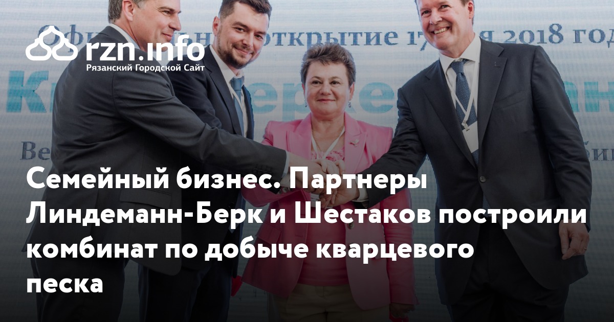 В пятницу, 17 мая, рязанский предприниматель Анатолий Шестаков и его сын Егор совместно с партнером из Германии Робертом Линдеманном-Берком — учредителем немецкой компании «Кварцверке ГмбХ» — запустили в Гусь-Хрустальном районе Владимирской области новый «Великодворский перерабатывающий комбинат» по добыче и обогащению кварцевого песка, который используется в стекольном производстве и стройиндустрии.