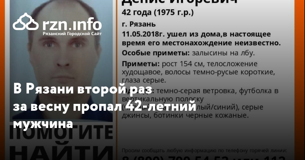 В Рязани вновь пропал 42-летний Денис Анохин. Об этом сообщила группа поисково-спасательного отряда «Liza Alert Рязань».