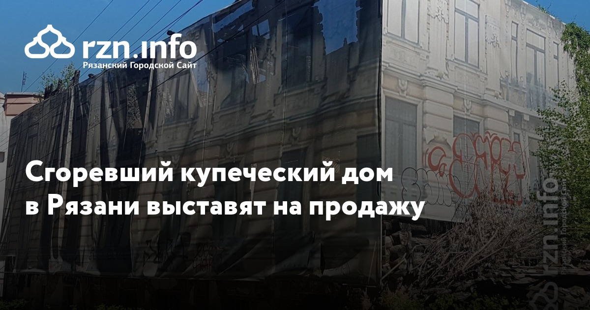Сгоревший купеческий дом в Рязани выставят на продажу