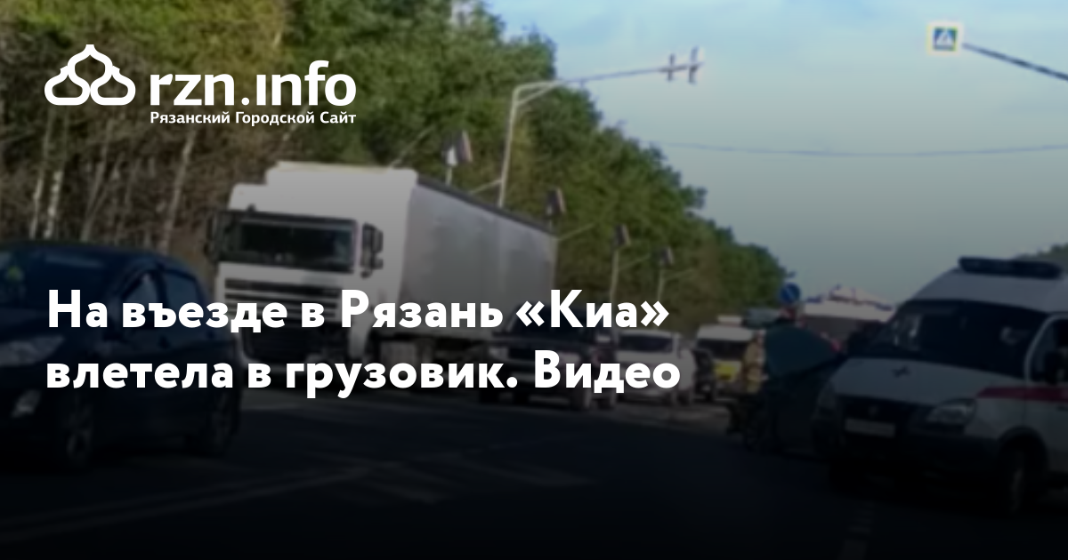 На въезде в Рязань автомобиль Kia влетел в грузовик. Видео опубликовали в группе «Подслушано у водителей Рязани» «ВКонтакте».