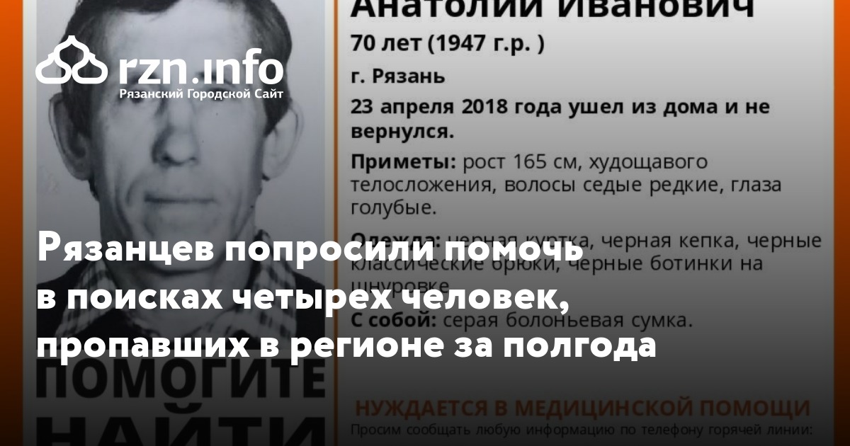 Рязанцев попросили помочь в поисках четырех человек, пропавших в регионе за полгода. До сих пор их местонахождение неизвестно, сообщили в группе «Liza Alert Рязань» «Вконтакте».