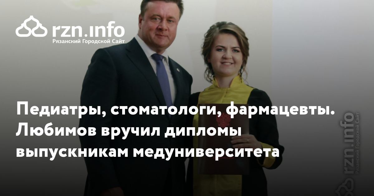 Помимо него будущих врачей поздравили первый замминистра здравоохранения региона Владимир Грачев, главный федеральный инспектор по Рязанской области аппарата полпреда президента в ЦФО Сергей Яковлев и ректор медуниверситета Роман Калинин. Они вручили дипломы остальным 237 выпускникам.