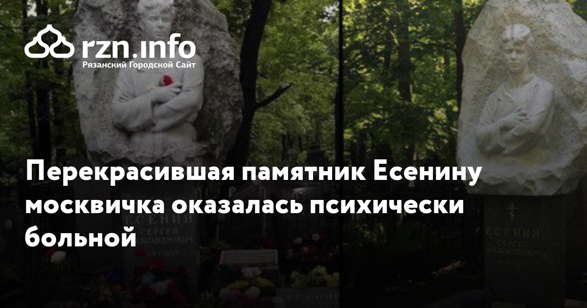 Женщина, которая покрасила в белый цвет памятник Сергею Есенину на Ваганьковском кладбище, оказалась психически больной. Об этом со ссылкой на личный источник передает «РИА Новости».