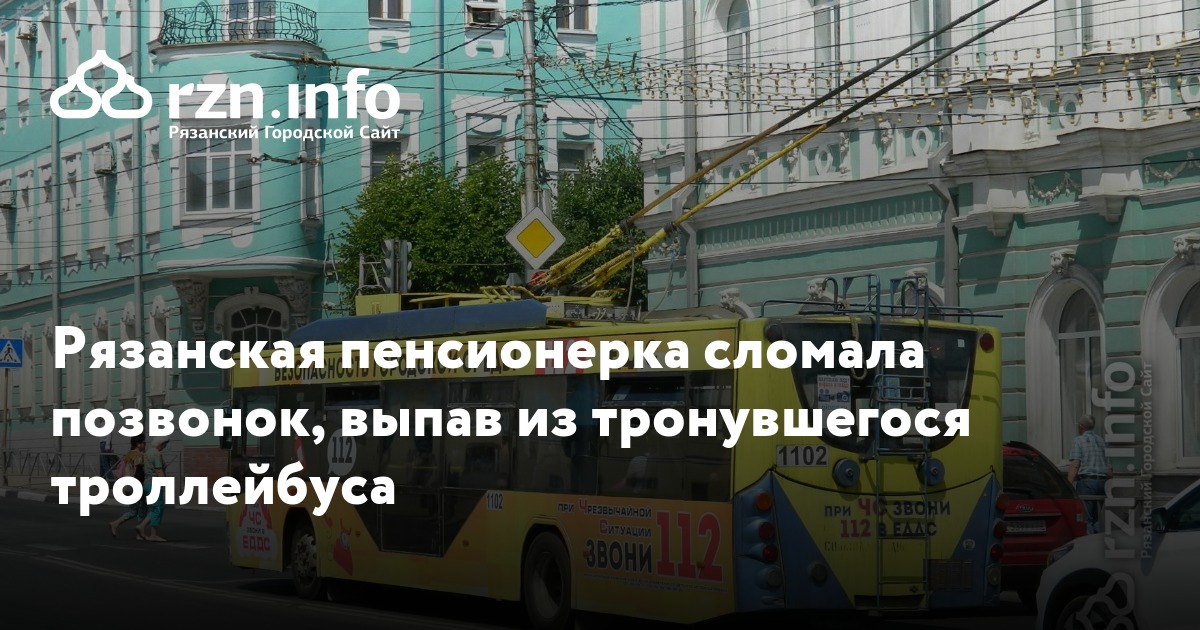 Рязанская пенсионерка сломала позвонок и получила множественные ушибы, выпав из троллейбуса. Инцидент произошел 25 июня на остановке «Гостиница Первомайская».