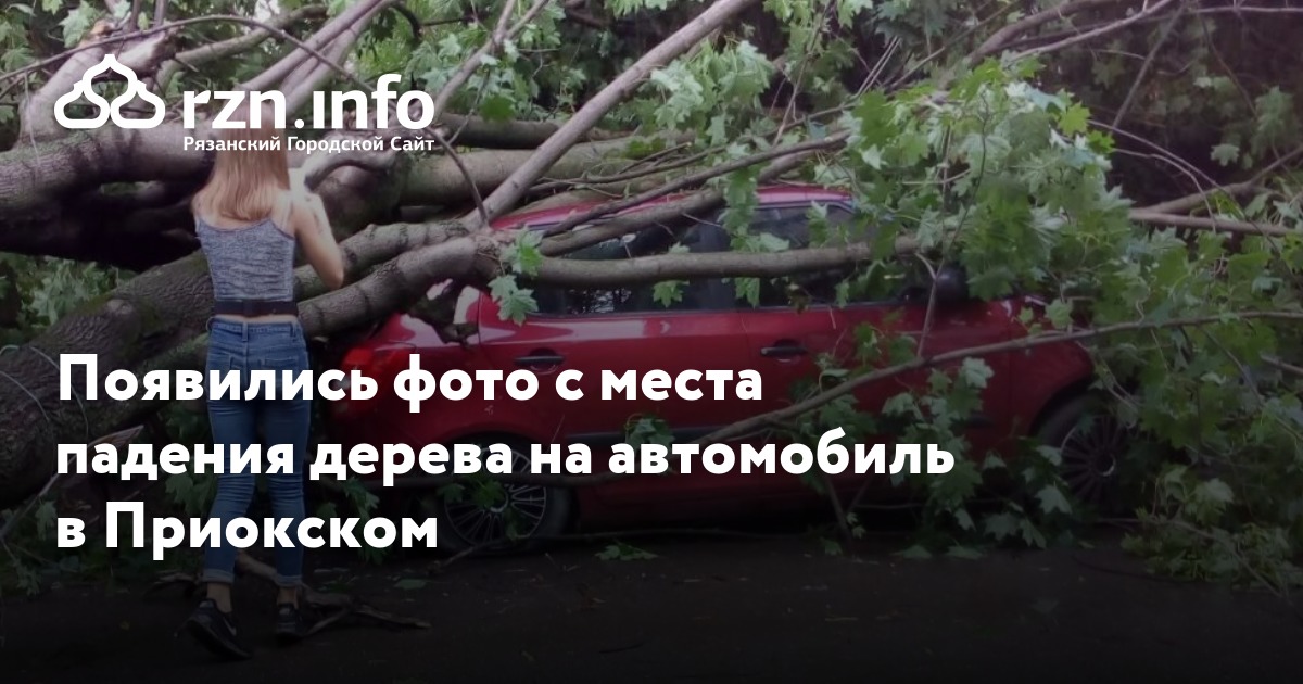 Появились фото с места падения дерева на автомобиль в Приокском