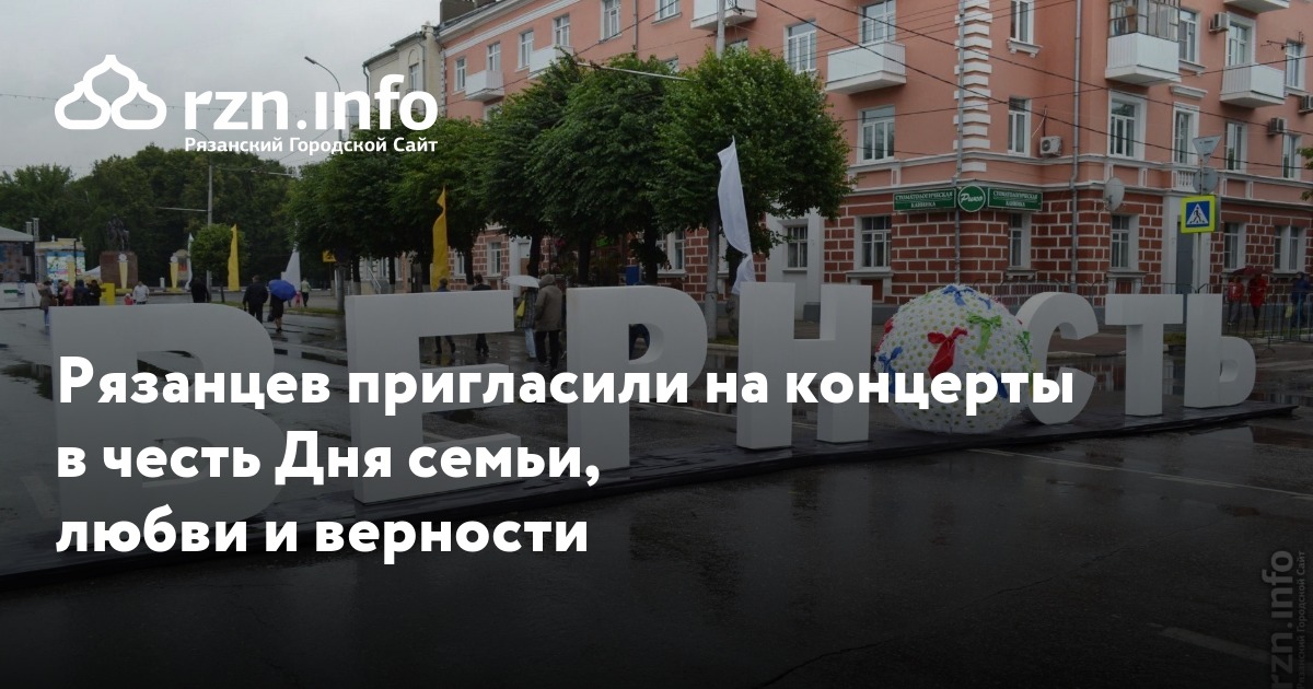 Рязанцев пригласили на концерты в честь Дня семьи, любви и верности. Об этом сообщил мэрии.