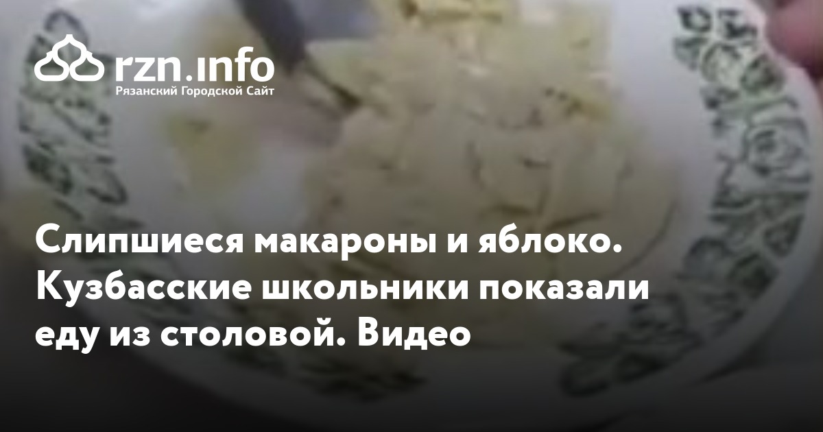 Слипшиеся макароны и яблоко. Кузбасские школьники показали еду из столовой. Видео