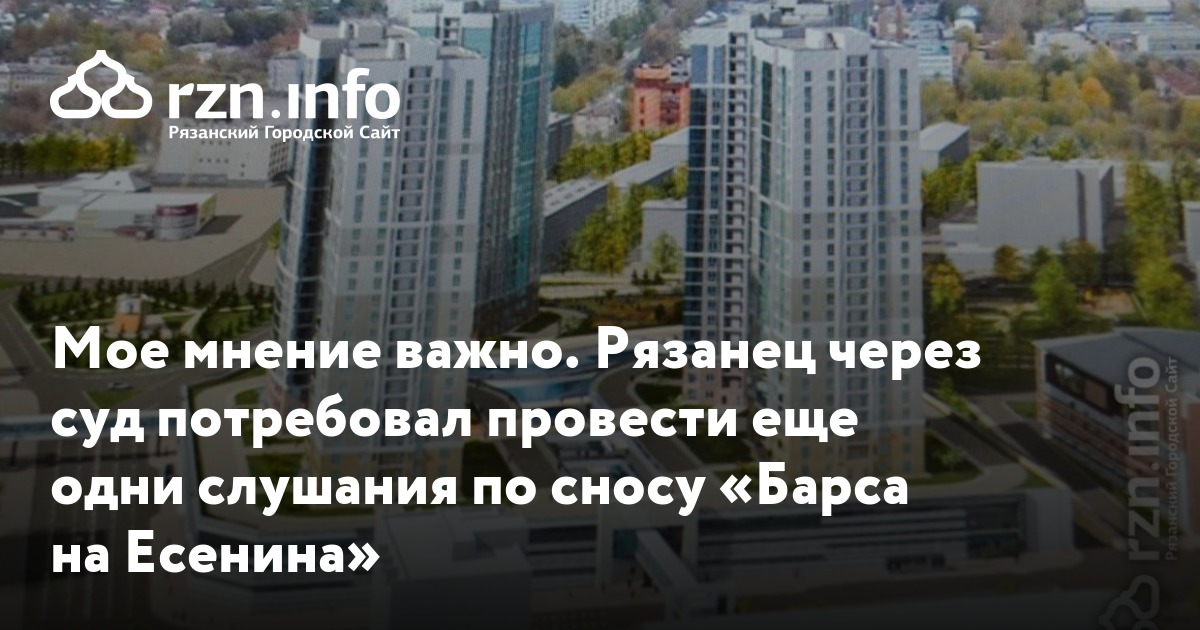 Мое мнение важно. Рязанец через суд потребовал провести еще одни слушания по сносу «Барса на Есенина»