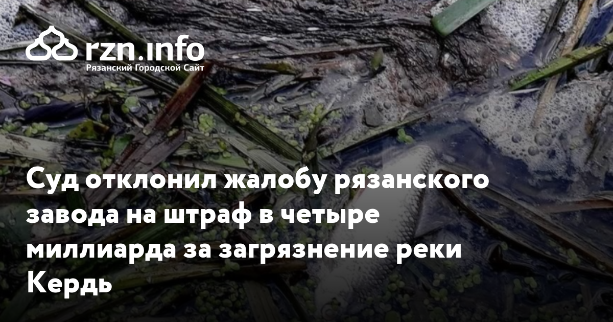 Суд отклонил жалобу рязанского завода на штраф в четыре миллиарда за загрязнение реки Кердь. Об этом говорится на сайте Арбитражного суда.