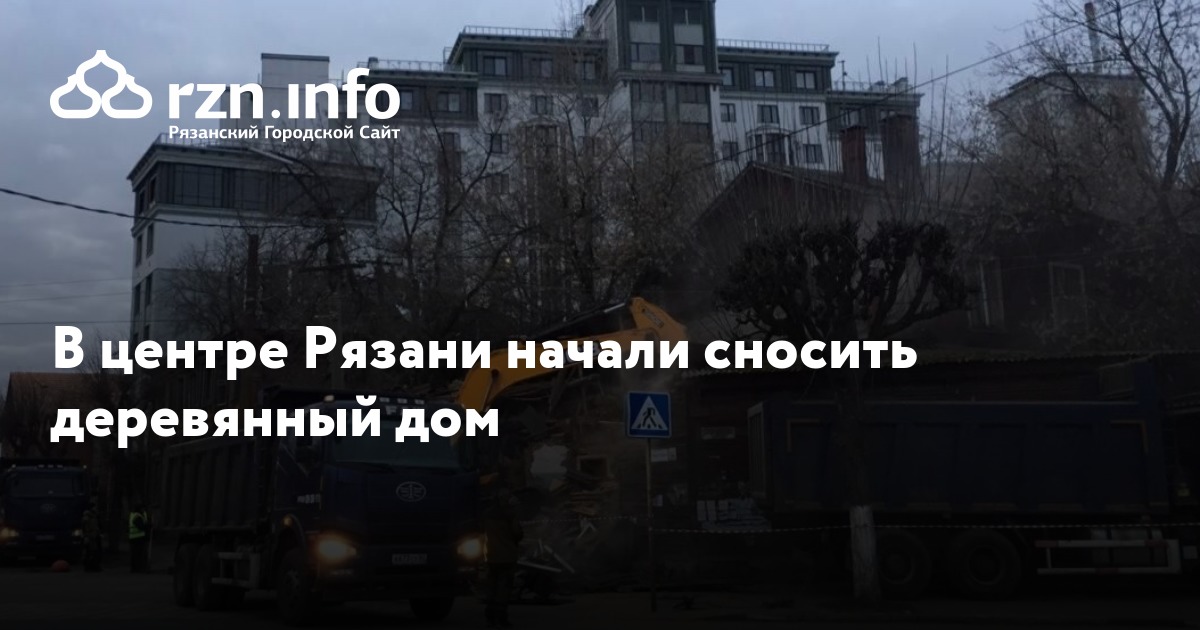 Утром в субботу, 21 декабря, в центре Рязани начали сносить деревянный дом. На место пригнали экскаватор и несколько грузовиков.