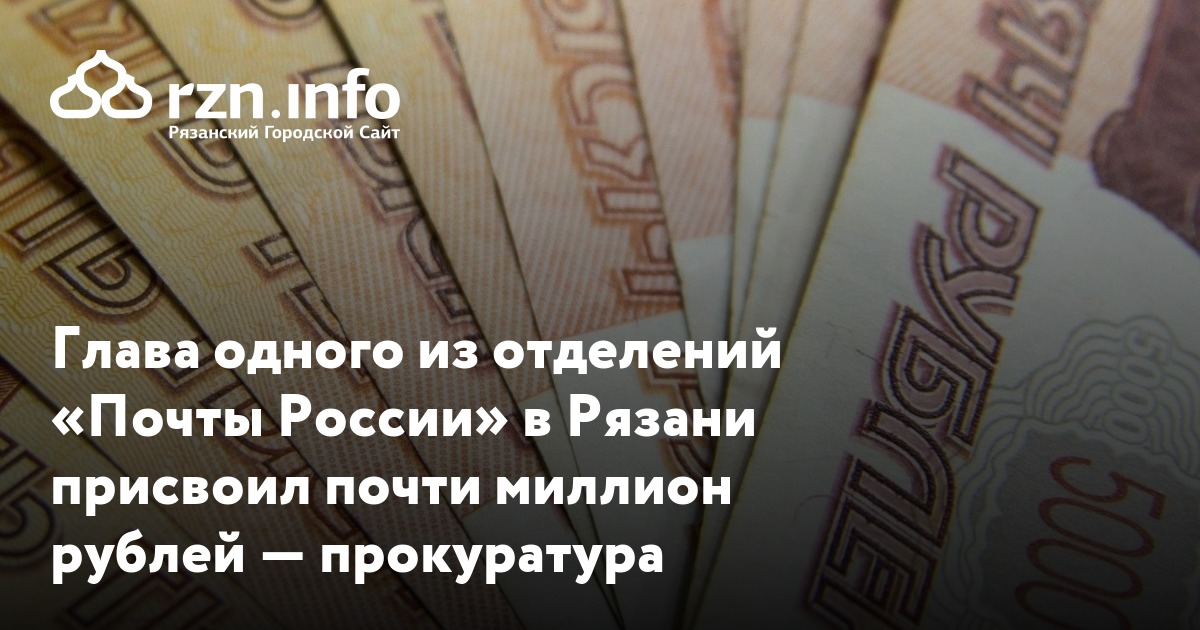 Глава одного из отделений «Почты России» в Рязани присвоил почти миллион рублей — прокуратура