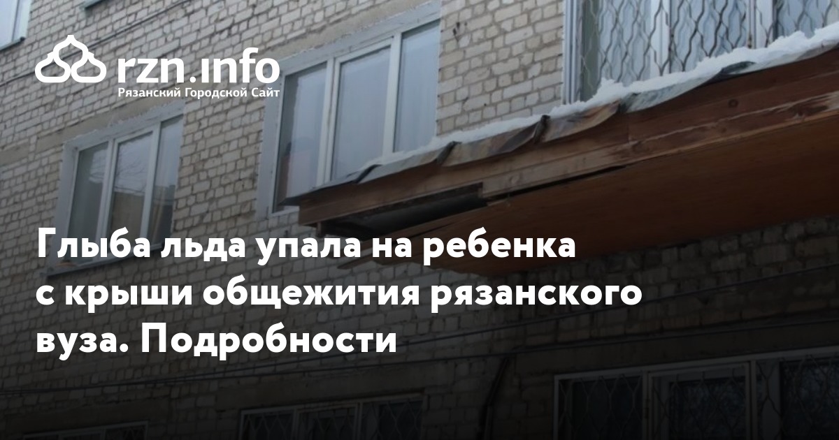 Глыба льда упала на ребенка с крыши общежития рязанского вуза. Подробности