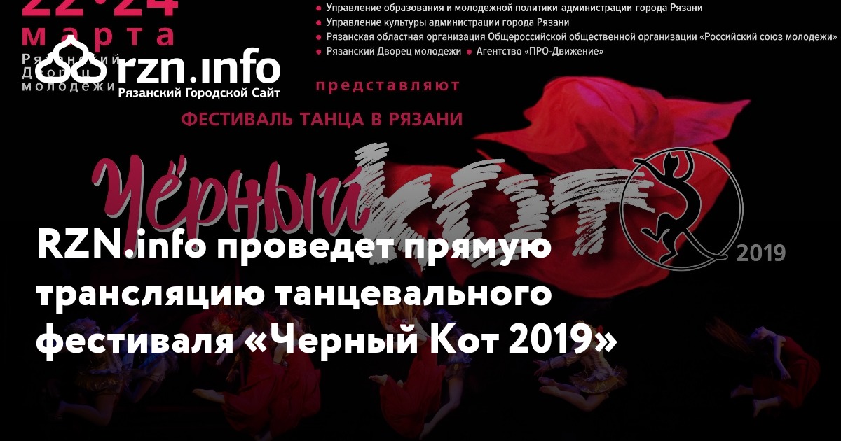 RZN.info проведет прямую трансляцию танцевального фестиваля «Черный Кот 2019». Он пройдет в рязанском дворце молодежи с 22 по 24 марта.