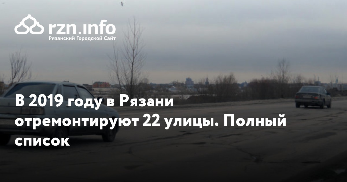 В 2019 году в Рязани отремонтируют 22 улицы. Полный список