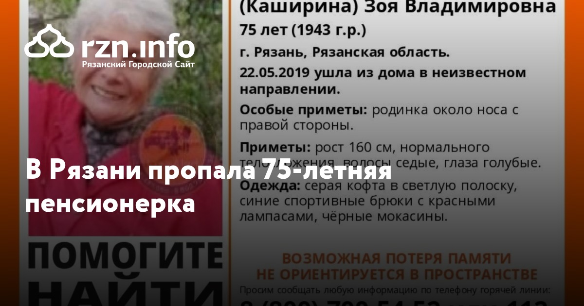 В Рязани пропала 75-летняя пенсионерка