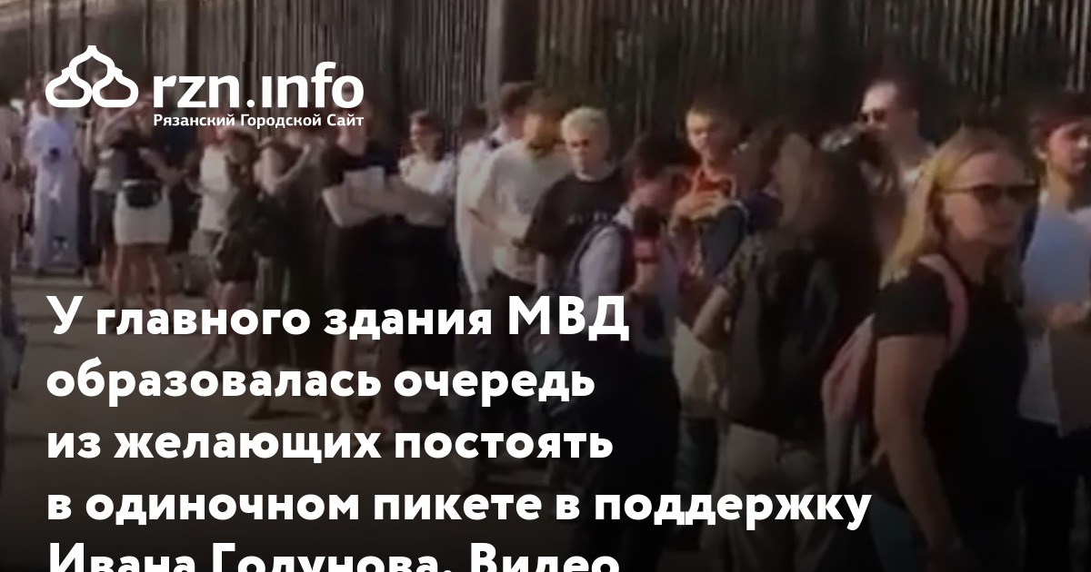 У главного здания МВД в Москве образовалась очередь из желающих постоять в одиночном пикете в поддержку журналиста Ивана Голунова. Видео размещено в группе «ВКонтакте» «Лентач».