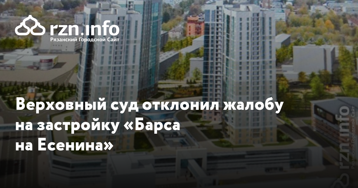 Верховный суд отклонил жалобу на застройку «Барса на Есенина». Об этом сообщила пресс-служба Рязанского областного суда.
