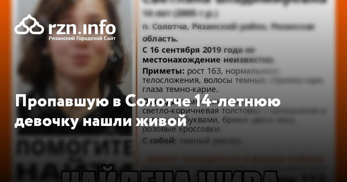 Пропавшую в Солотче 14-летнюю Светлану Хохлачеву нашли живой. Об этом сообщили активисты поисково-спасательного отряда «Лиза Алерт Рязань».