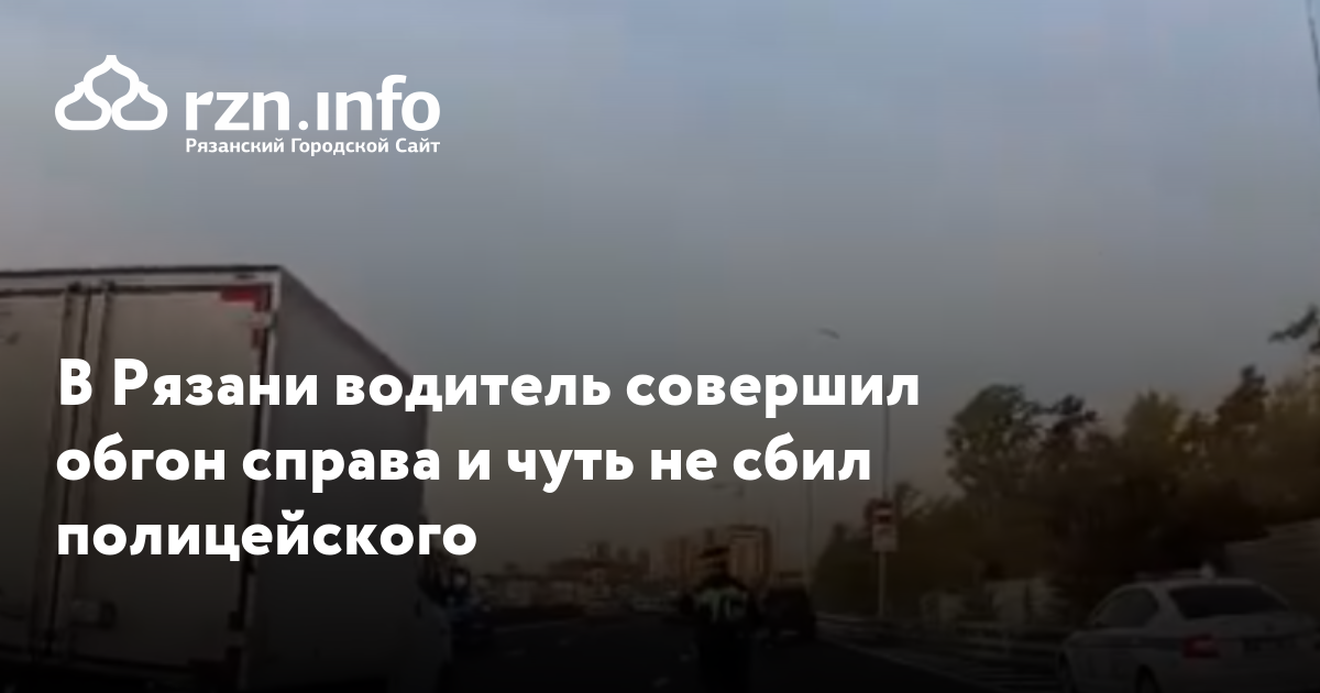 В Рязани водитель совершил обгон справа и чуть не сбил полицейского. Запись видеорегистратора опубликовали в соцсети.