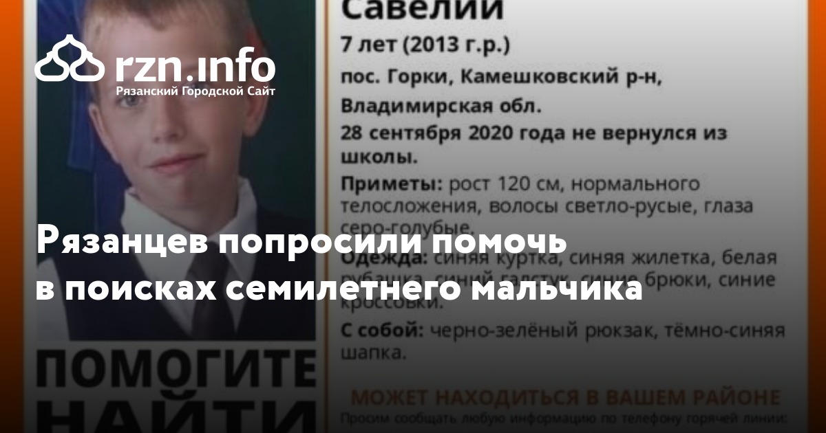 Рязанцев попросили помочь в поисках семилетнего мальчика