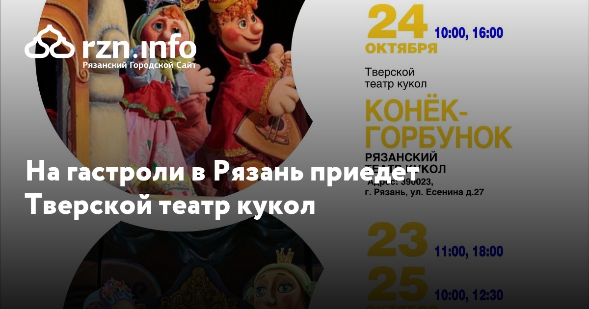 На «Большие гастроли» в Рязань приедет Тверской театр кукол. С 22 по 25 октября на сцене Рязанского кукольного театра покажут две постановки.
